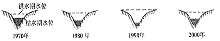 2、2000年较1990年水位变化减小,其原因最有可能是流域内