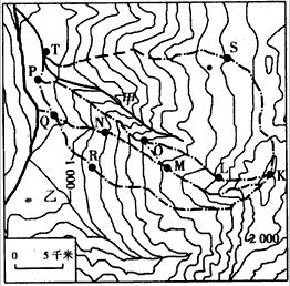 2、拟在K点与T点之间选择起伏较平缓的路线,修建供拖拉机通行的道路,合理的路线是