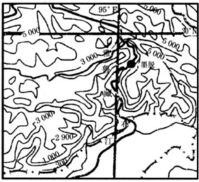 2、单选题  下图为某地区等高线地形图。读图回答1—2题。