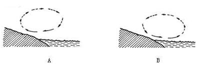 (从陆地吹向海洋的风,称为离岸风,反之为迎岸风。上图中指向陆地的单箭头表示迎岸风,反之为离岸风,