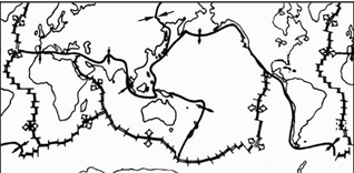 材料二:全球六大板块示意图