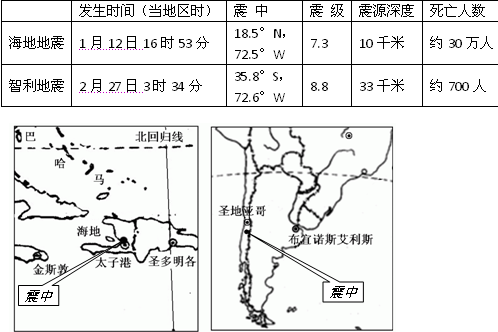 材料一:2010年海地和智利的强烈地震对比资料