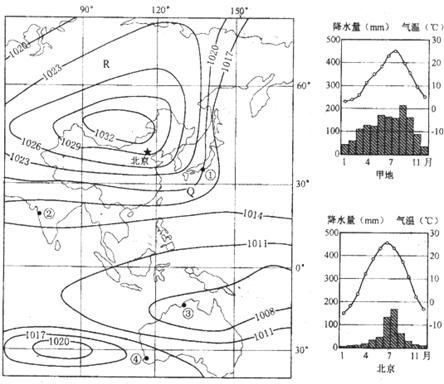(1)此时,我国首都北京的天气状况是___________,请说明理由。(4分)
