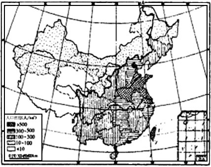 1、综合题 阅读我国人口密度分布图,回答下列问题。