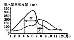 4、单选题 读“我国某地降水量(实线)与蒸发量(虚线)的季节变化曲线图”,完成1—2题。