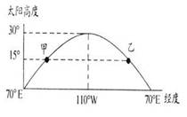 4、单选题 该图是某日北半球某纬度上不同经度的太阳高度示意图。读图回答问题。