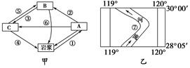 2、单选题  地质勘探甲图B处有一大煤层。读下列甲、乙两图,完成题。