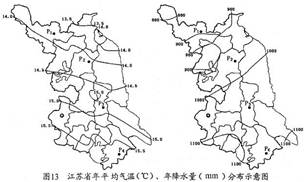 3.图示反映江苏省不同的区域,降水、气温分布存在区域差异,则农业生产应符合因地制宜原则,适应不同区域的自然环境而发展不同的农业生产类型。