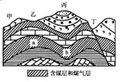 本题解析:乙处为背斜成谷,它是因背斜顶部被侵蚀而形成的;丙处为向斜成山,它是因向斜槽部物质坚硬、不易被侵蚀而形成的;丁处是在断层基础上发育而成的谷地。选择B项。