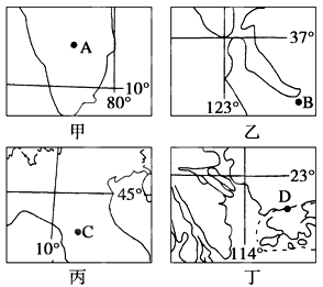 【小题1】图中甲、乙、丙、丁四区域,气候类型相同的是( )