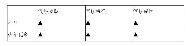 (2)比较利马和萨尔瓦多两地的气候差异。(8分)
