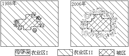 小题3:与1986年不同的是,2006年农业区I的农产品常年供应量增大,其主要原因是(?)