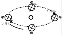 (2)地球处于①位置时,为北半球的?日(二分、二至日),此日太阳直射的纬线是?。该日后,太阳直射点将向?(方向)移动。