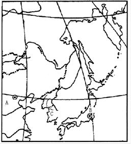 3、综合题 读东亚部分地区图,回答下列问题。(12分)