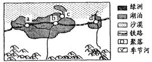 小题4:图中a、b、c、d四个聚落,最容易形成城镇的是(?)