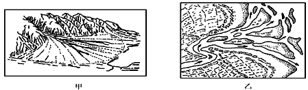 4、单选题 下图所示的岩石分布状态图中,黑色代表的是岩浆通道,甲、乙两处岩石可能分别是