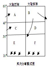 2、填空题 读“四种气候类型直方图”和“风向分布模式图”,回答下列问题。(20分)