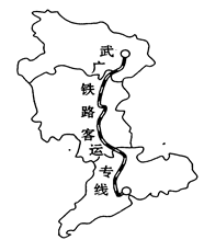 3、单选题 2009年已建成通车的武广客运专线设计时速达350公里,该专线建成后,从长沙到广州由原来的9小时缩短至3小时。读下图,根据所学的知识回答小题。