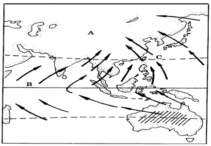 (3)B为 季风,C为 季风,B季风的成因主要是 。