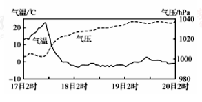 3、单选题 我国西北某地某年4月17~20 日气温和气压变化情况。读右图,据此回答下列小题。