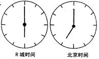 5、单选题 某日,一位来自R城的游客在北京一宾馆住宿,此时R城的日期和区时与北京都不相同。如图所示,读图,回答9~10题。