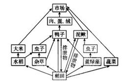 3、综合题 日本九州岛一个7英亩的水稻农场建立了下图所示的发展模式。读图,完成下列