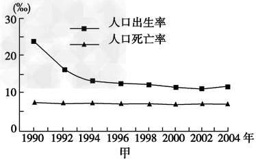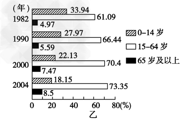 2、单选题 ?读“某省人口出生率、死亡率变化图”和“人口年龄结构变化图”,回答下列问题。