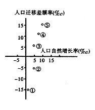 5、单选题 下图为某一组团式城市中各城市人口变动统计图,其中,人口迁移差额率为人口迁入与迁出的差额与总人口的比重。读图判断以下2题。