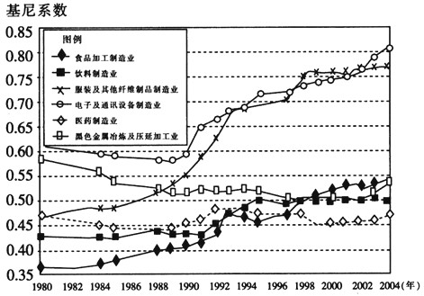 1、20世纪80年代以来,分布从较为分散到显著集中的产业是