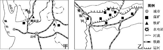 4、单选题 读下图“中国攀枝花工业区(甲)和德国鲁尔区(乙)图”,据此完成下列问题。