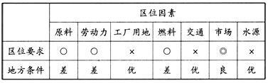5、单选题 读某工业部门区位要求及其所在地的地方条件比较表(“◎”号表示指向性因素,“×”号表示重要因素,“○”号表示一般因素),回答1~2题。