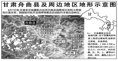 材料二 “甘肃舟曲县及周边地区地形示意图”
