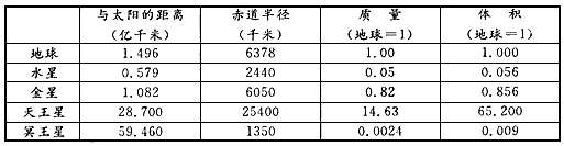 1、根据下表行星的相关参数,判断“惨遭降级”的是