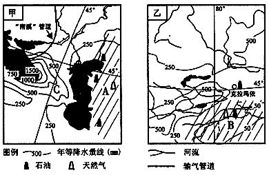 (2)根据甲图信息,说明影响 C 地附近降水分布的主要因素。(3分)
