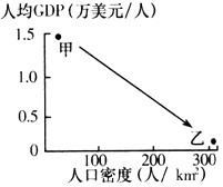 5、单选题  下图是某发达国家与某发展中国家人均GDP和人口密度示意图。下列工业中,最可能由甲国转移至乙国的是