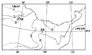 小题1:①、②位于新疆山区,天山一定高度降水较多,故降水量①>②,其他受距海远近影响,降水量从东南向西北递减,故②<③<④。