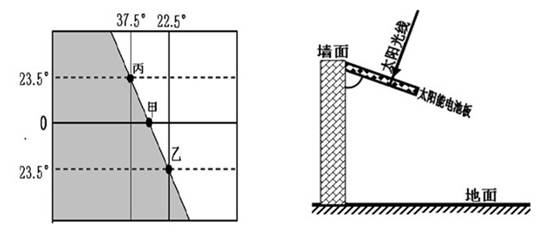 (1)如果晨昏线与甲地所在经线的夹角为12°,则该日正午时分北京(40°N)太阳能电池板与建筑物外墙(墙面与地面垂直)之间最合适的夹角约为 。