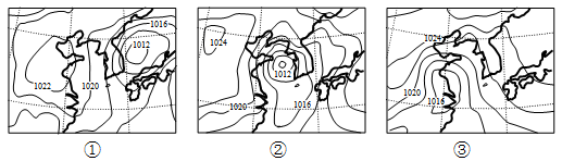 1、单选题 中纬度高空盛行西风气流,它对近地面气旋的移动有显著影响。下图是东亚12月份某日前后每隔12小时的海平面气压分布状况图。读图,完成下列各题。