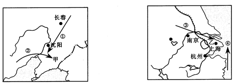(1)图中的甲地为鞍山钢铁公司,乙地为宝山钢铁公司。其钢铁工业基本形成一定的工业地域。这种工业