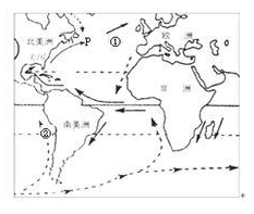 1.中低纬海区的洋流2.P海区由于寒暖流交汇形成的著名渔场是3.序号②所代表的洋流对南美洲西海岸的影响是