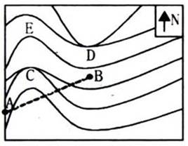 4、单选题 读等高线图,已知等高距为25米,AB为一空中索道。读图后回答问题: