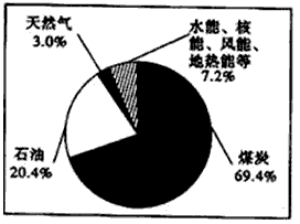 4、综合题 能源是人类社会发展的重要物质基础。下图是我国2006年一次能源消费结构图(一次能源指在自然界现成存在,不改变其形态就可直接取用的能源)。读图回答下列问题。