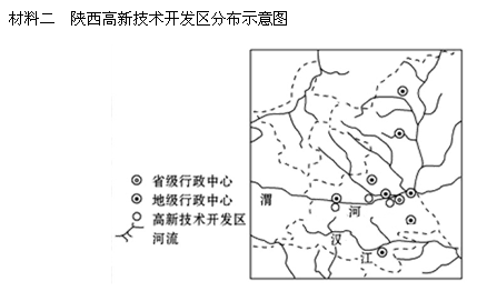 参考答案:(14分)(1)分布特点:主要分布在经济发达的渭河平原(或主要依托大城市分布、沿交通线分布等)。(3分)