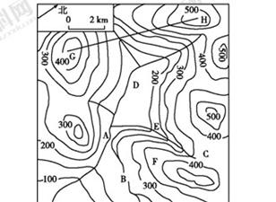 (4)若G、H两地图上距离为3.6 cm,,则两地实地距离为 ?;G与H的相对高度为 。?(4分)