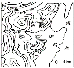 (2)依据图中提供的信息,说明甲、乙两村所处位置的相同点。(3分)