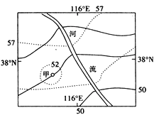 3、单选题 下图中,实线是地形等高线,虚线是潜水面等高线,等高距皆为5米,甲处为城镇。读图回答下列各题。