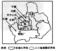 3、单选题  读华北某市人口地域圈层结构及其人口变化状况图,回答下题。