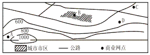 (2)A、B、C、D四地中,________地商业网点密度最大,原因是_________________________________