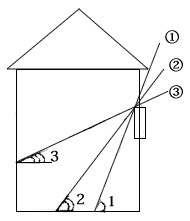2、单选题 下图为某地朝南窗户二分二至日正午阳光入射图。据图完成1—2题。