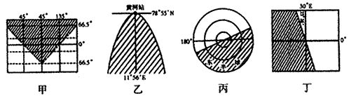 (3)甲图中晨昏线与地轴的夹角是_______。